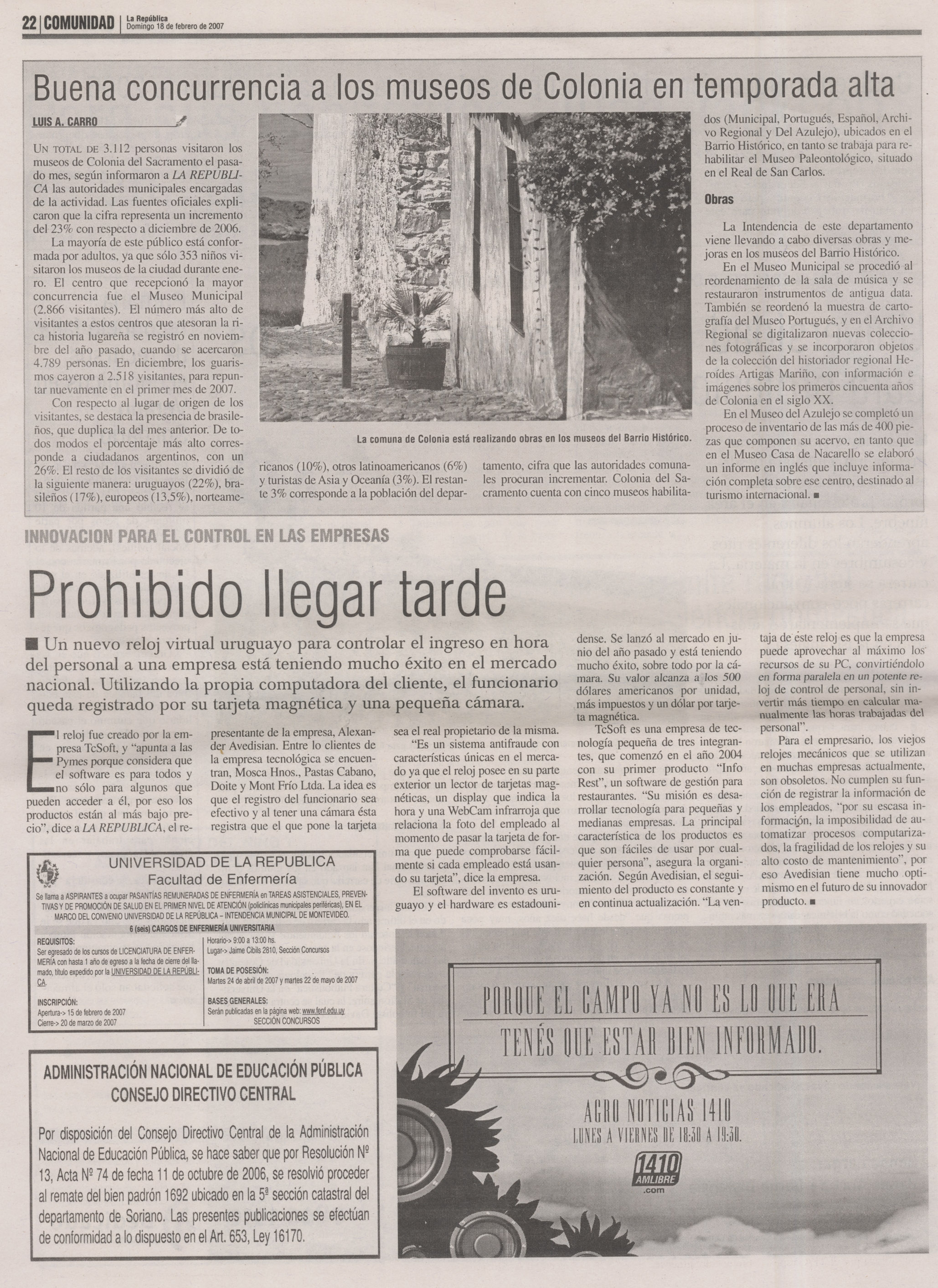 | 15-06-06 TCSOFT LANZO EL "RELOJ VIRTUAL" PARA EL CONTROL DEL PERSONAL EN EL HOTEL HOLIDAY INN | |||